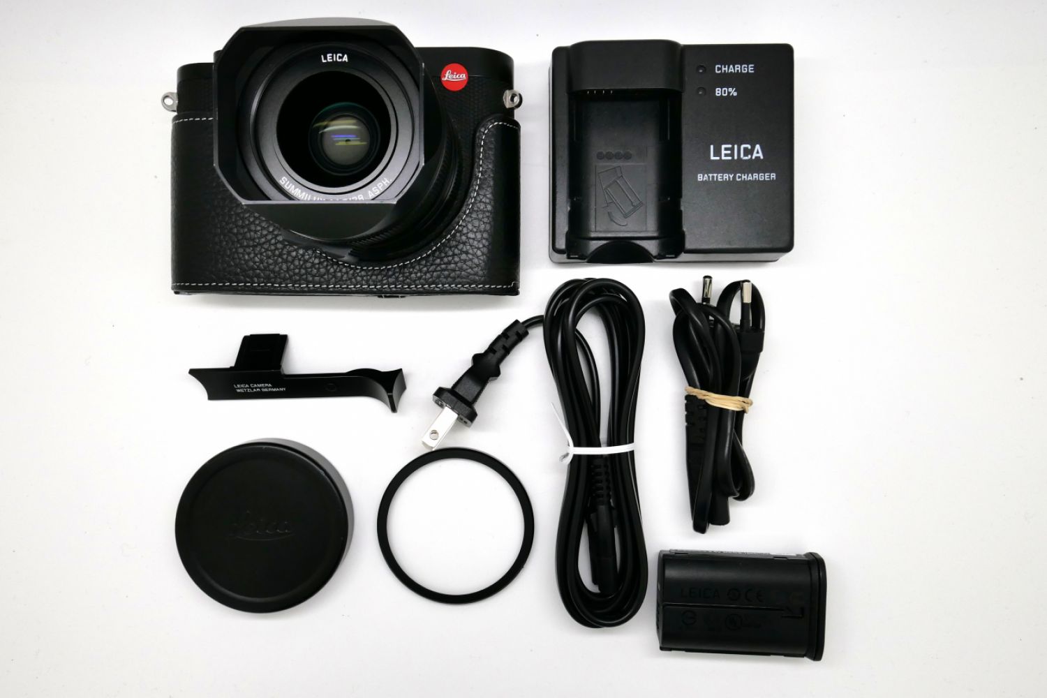 Vendu avec sa boite d'origine, son parasoleil, son bouchon de boitier, sa batterie, son chargeur, sa courroie en cuir.