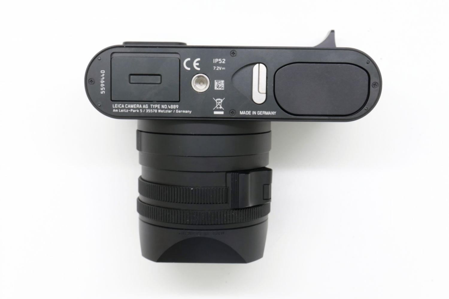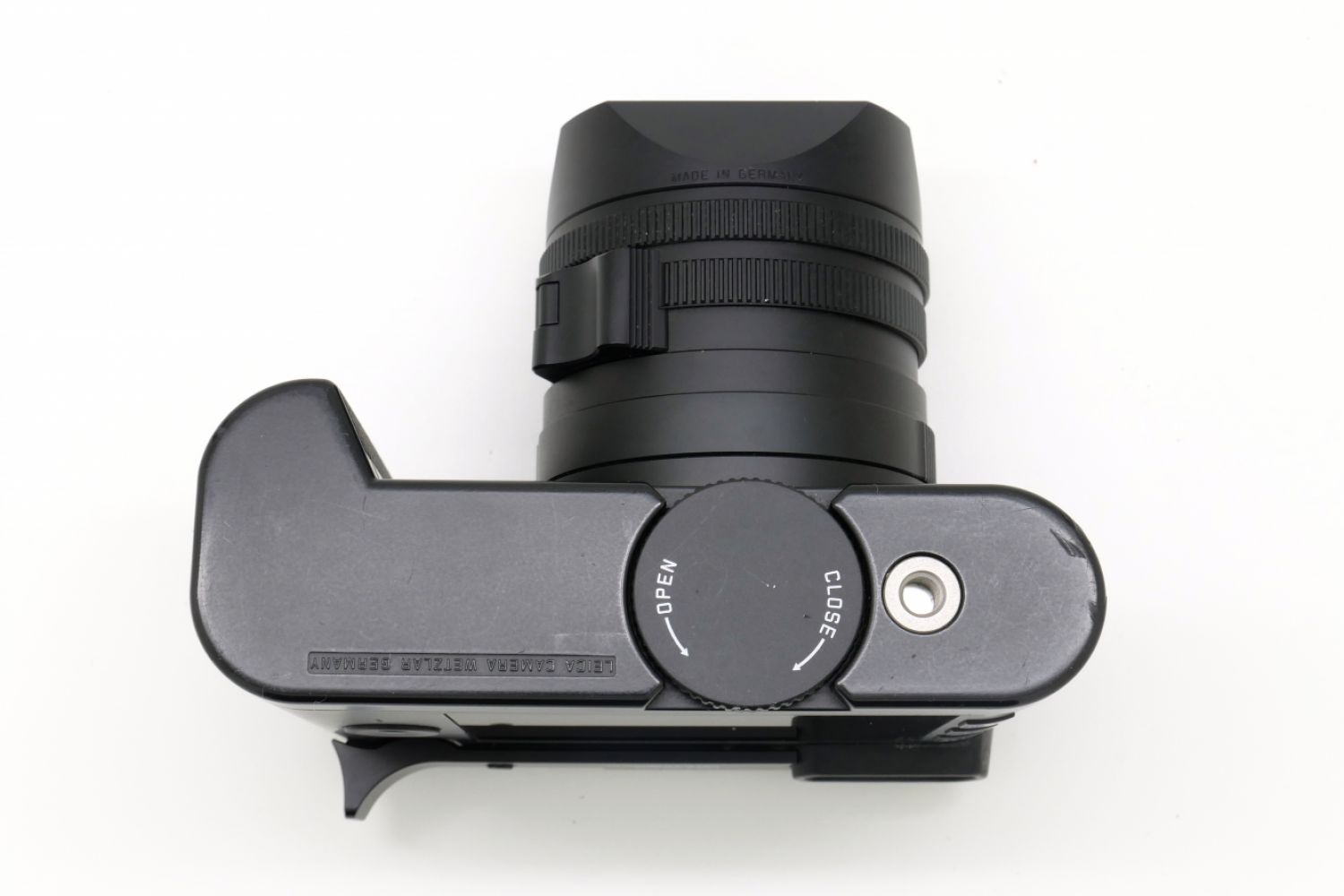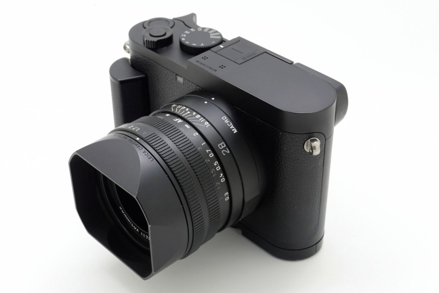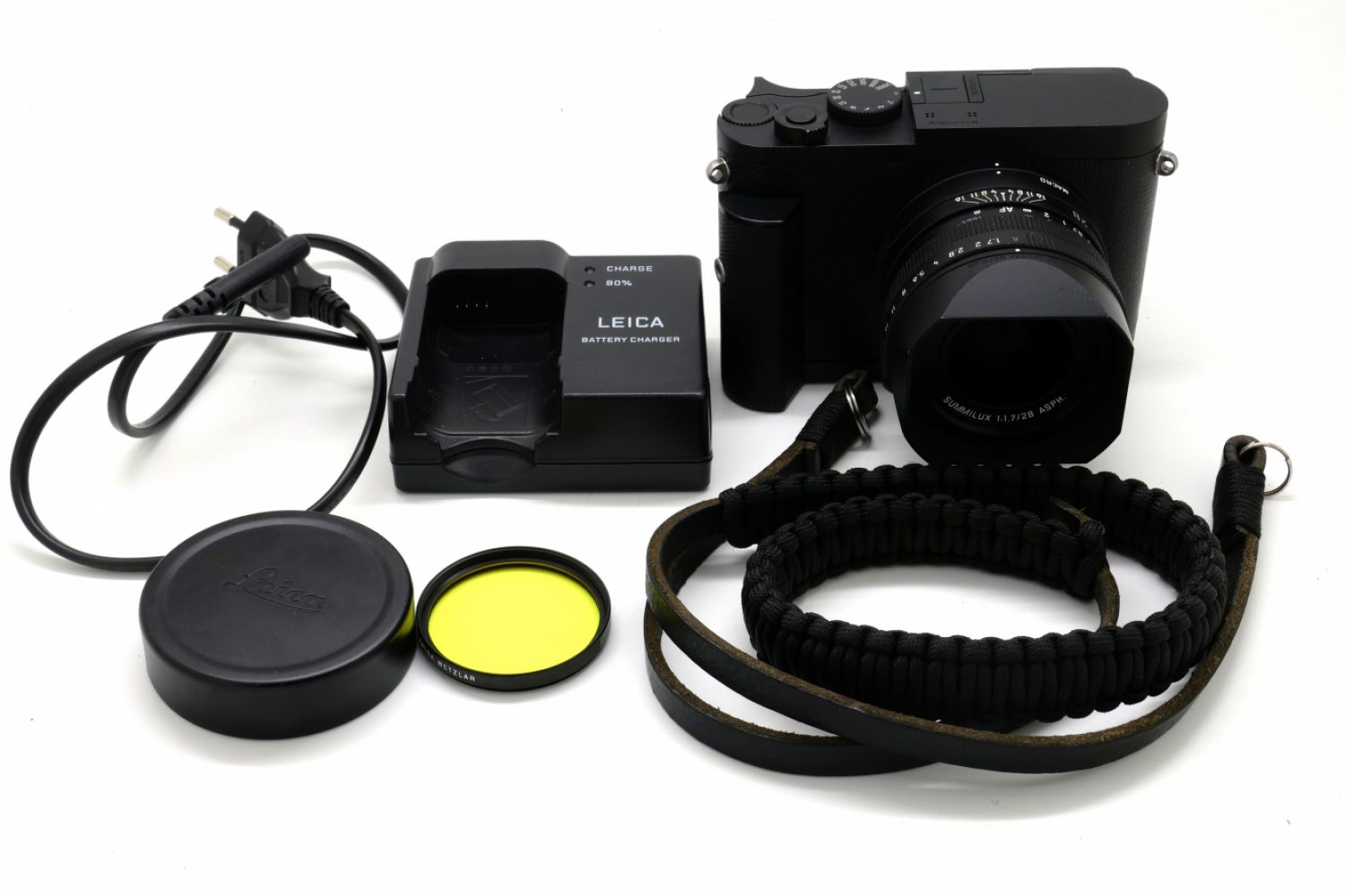 Vendu avec sa boite d'origine, son repose pouce, son grip, un filtre UV Leica jaune, son chargeur, sa batterie, une courroie, son parasoleil et son bouchon.
