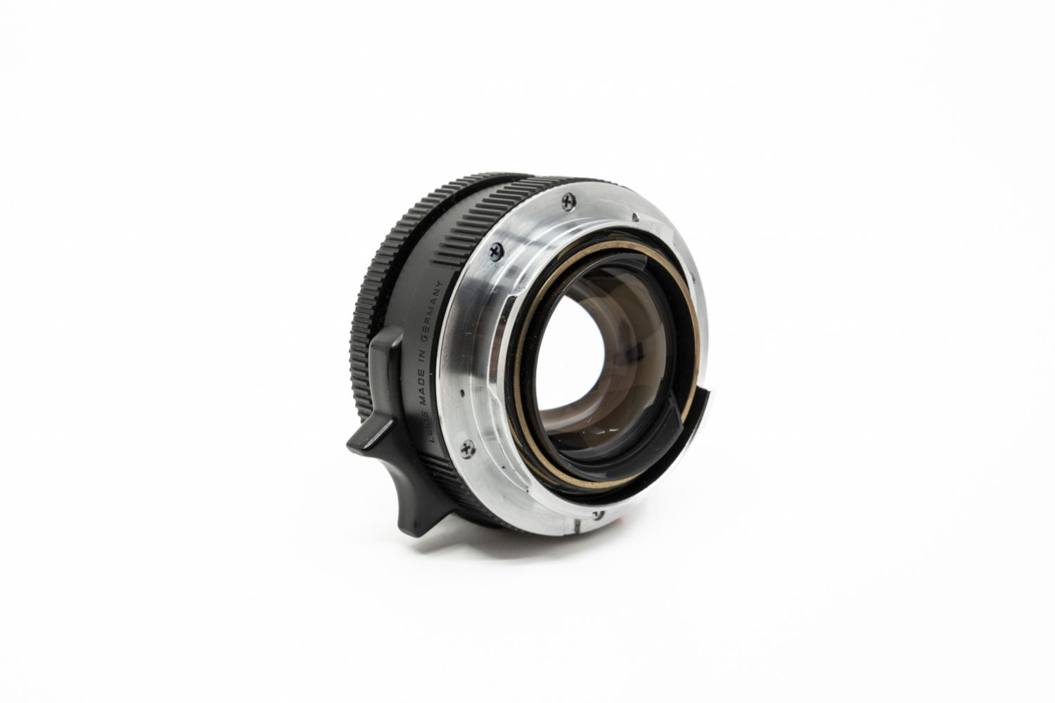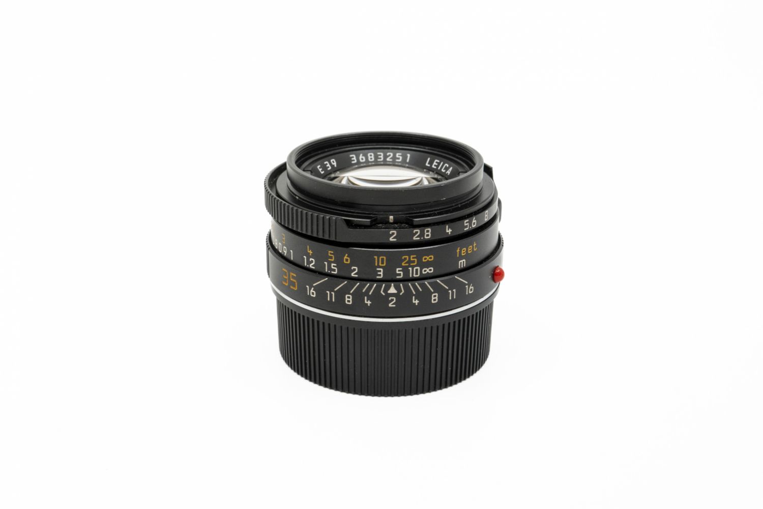 Leica Summicron-M 2/35 version 4 vendu avec son bouchon arrière, son pare-soleil et bouchon de pare-soleil.