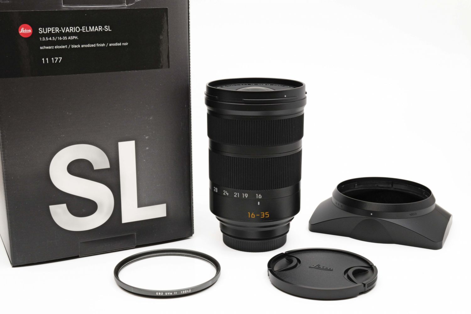 SUPER-VARIO-ELMAR-SL 16-35mm f/3,5-4,5 ASPH vendu avec sa boîte complète et un filtre UV Leica.