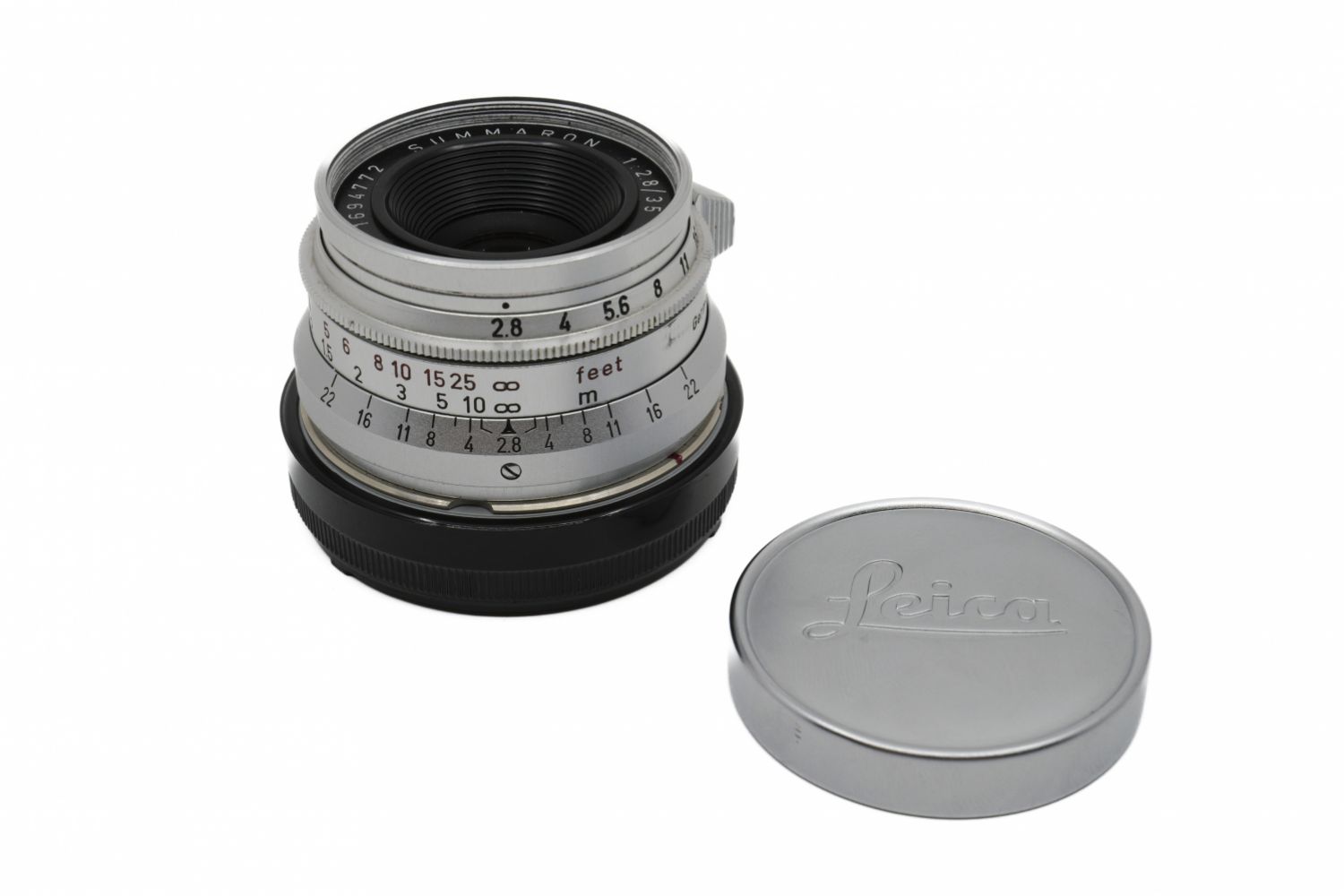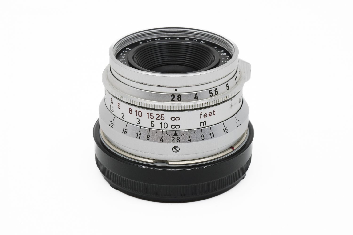 Leica Summaron 35mm F/2.8 à vis, vendu avec ses bouchons et une bague M non Leica.