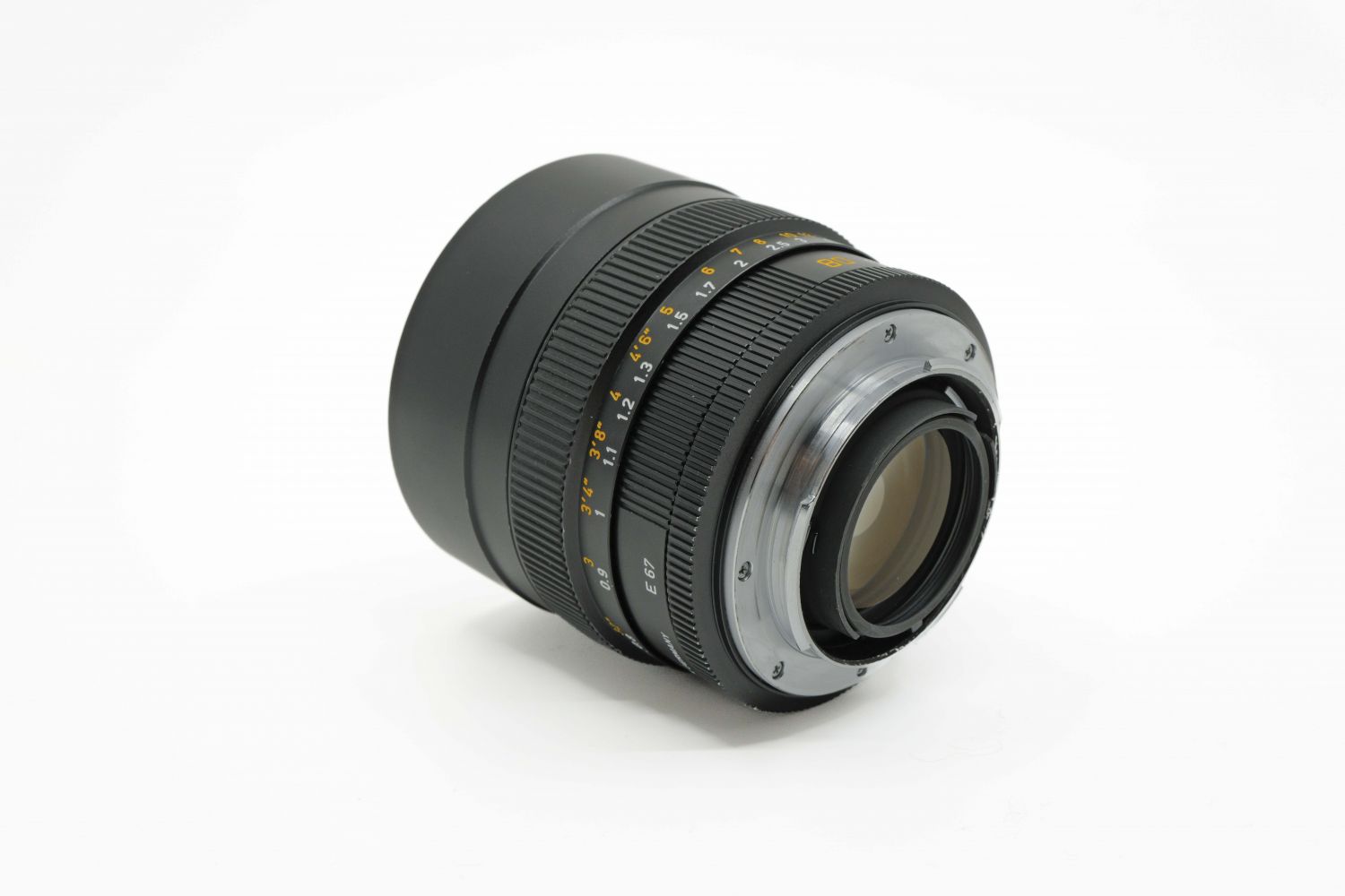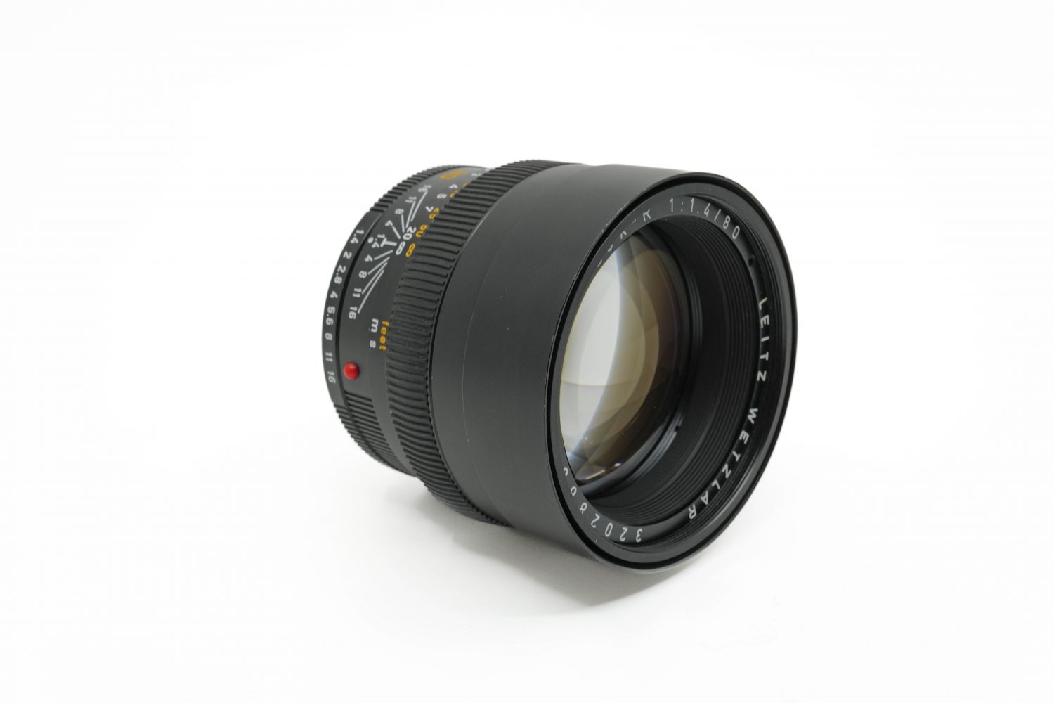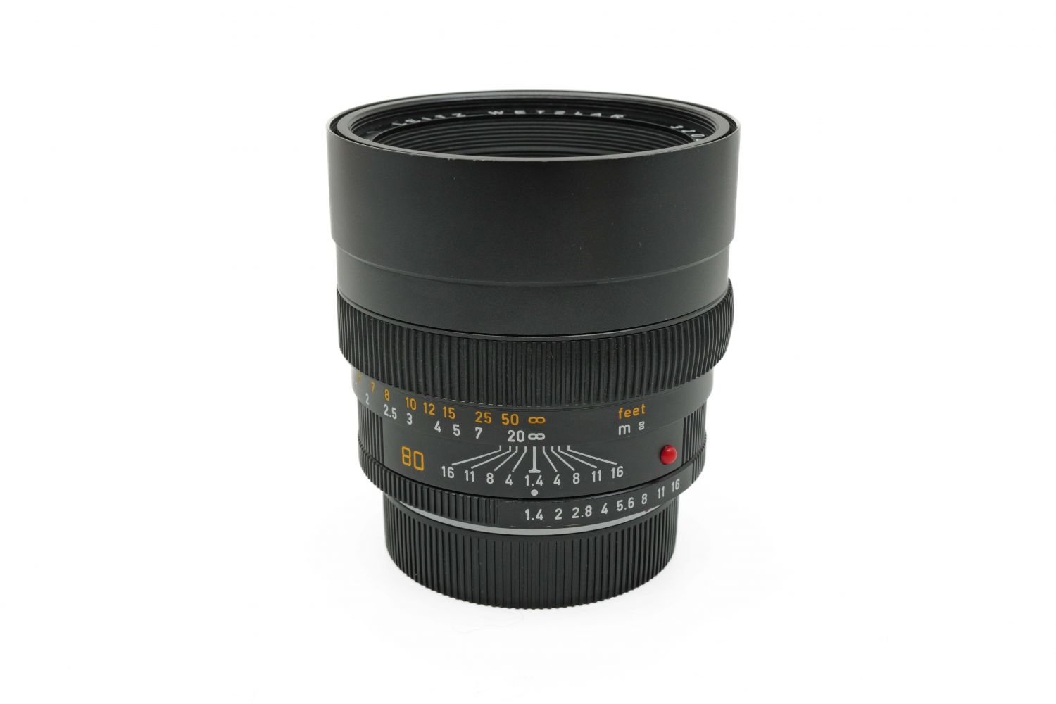Leica Summilux-R 1.4/80mm vendu avec ses bouchons, son étui en cuir et sa boîte. Présence de poussières internes n'altérant pas la qualité des images.